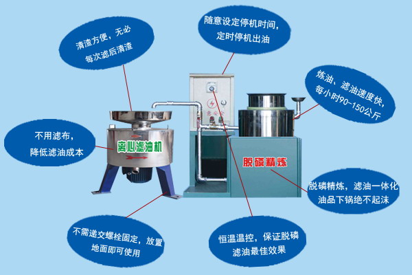 3、操作簡單方便,油與渣分別自動排出,無需人工清渣。