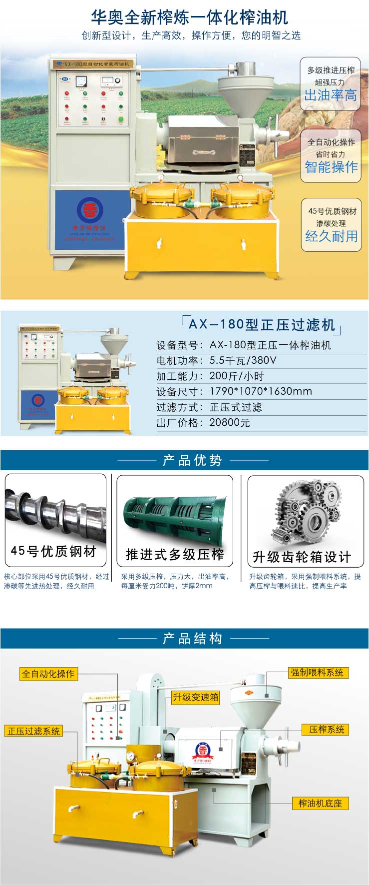 2、智能操作:微電自動化操作,省時省力生榨、熟榨兩用,一人操作即可;