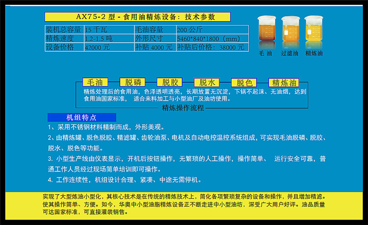 小型油脂精煉設(shè)備生產(chǎn)線機(jī)組全面推廣應(yīng)用