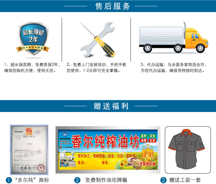 隨著人們對品牌觀念的日益提升,產(chǎn)品的包裝、品牌和宣傳成為了大家都十分關(guān)注的方面。購買榨油機的客戶,不僅僅考慮設(shè)備的質(zhì)量及配套,而且品牌包裝、廠家支持、服務(wù)項目等方面也更加重視。作為20年發(fā)展歷史的華奧機械公司,我們提供優(yōu)質(zhì)高效的榨油機及配套設(shè)備,價格合理,設(shè)備耐用,而且為廣大購機者提供更多增值服務(wù):油坊品牌統(tǒng)一授權(quán)、包裝商標(biāo)統(tǒng)一使用、加盟總部統(tǒng)一管理、無憂售后安心放心、持續(xù)發(fā)展不斷更新。