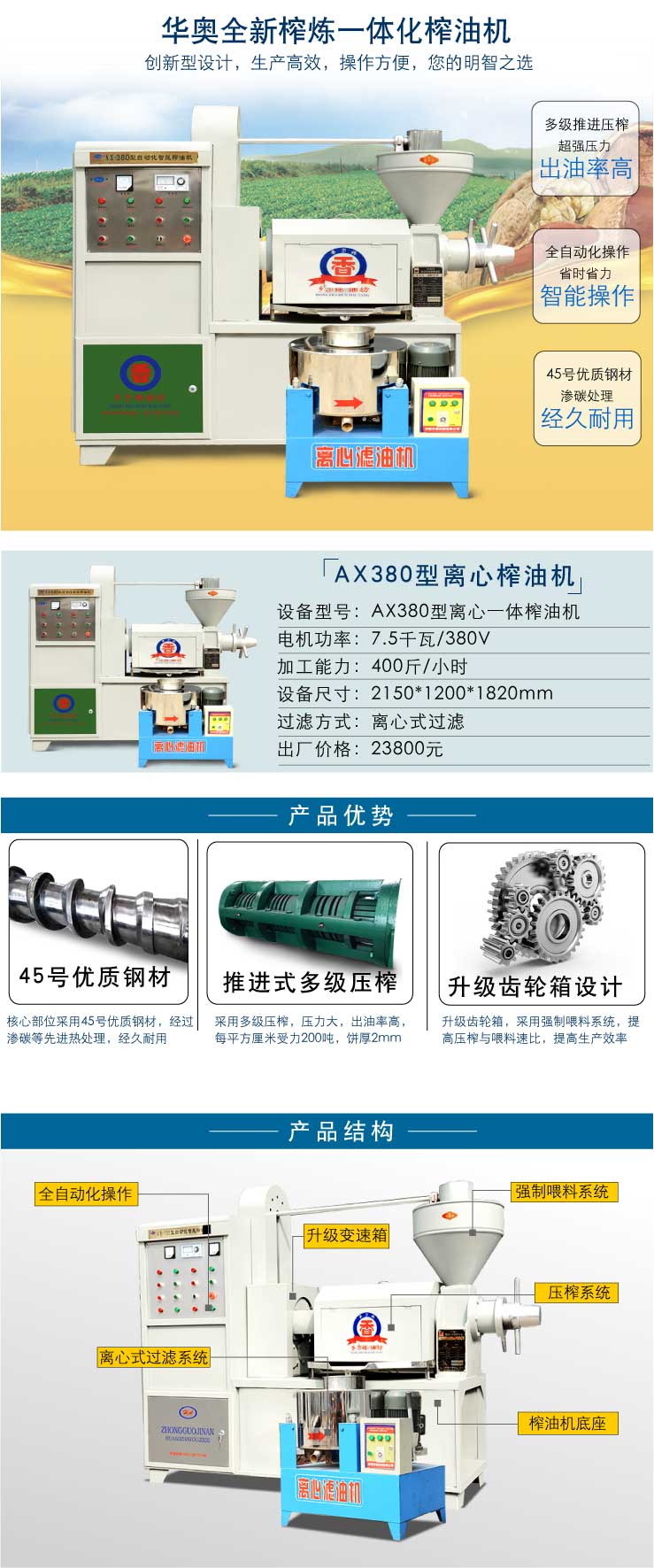 2、智能操作:微電自動(dòng)化操作,省時(shí)省力生榨、熟榨兩用,一人操作即可;